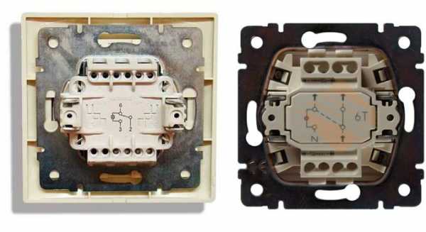 Чтобы не полагаться на наличие или отсутствие стрелочек на клавишах, нужно осмотреть контактную часть. На фирменных изделиях должна быть нанесена схема, позволяющая понять, какого типа оборудование у вас в руках. Она точно есть на изделиях фирм Lezard (Лезард), Legrand (Легранд), Viko (Вико). На китайских экземплярах они часто отсутствуют.
