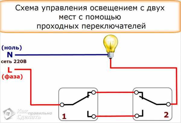 Главная » Электрика » Как подключить проходной выключатель (управление светом из двух и более точек)