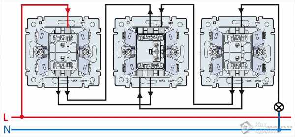 Уберете один «перекрестник», получите схему управления из четырех точек. Добавите еще — будет уже схема на 6 мест управления.