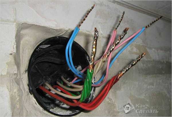 На заметку! Для удобства подводимые концы проводов до распределительной коробки нужно делаться больше примерно пятнадцать сантиметров.