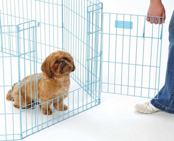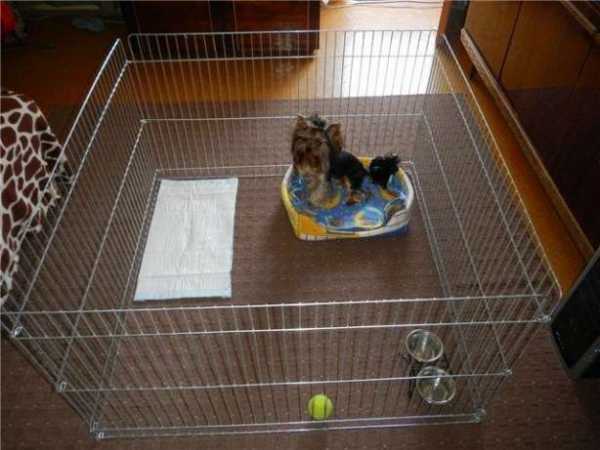- Приучение к горшку. Многие собаки небольших пород очень проблематично приучаются к лотку. Вольер поможет собаке понять, куда стоит ходить, при этом не оказывая влияния на ее психику.