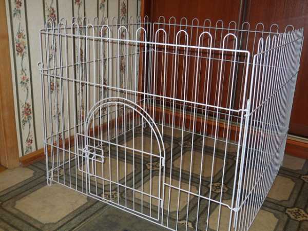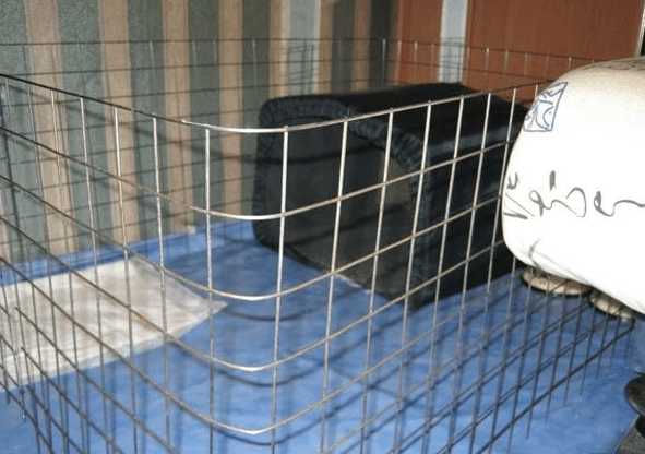 Чтобы изготовить вольер для щенка своими руками в квартире, необходимо приобрести сетку из металла. Не стоит использовать рабицу, поскольку из-за подвижности ячеек питомец может пораниться. Наиболее подойдет вариант, который изготовлен из прутьев. Это более прочный и безопасный материал.