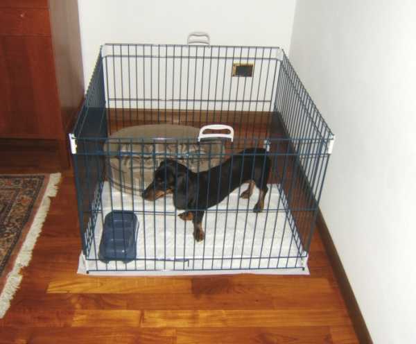 - Домашний вольер облегчает процесс приучения щенка к лотку. Отпадают хлопоты в дополнительной уборке всей квартиры.