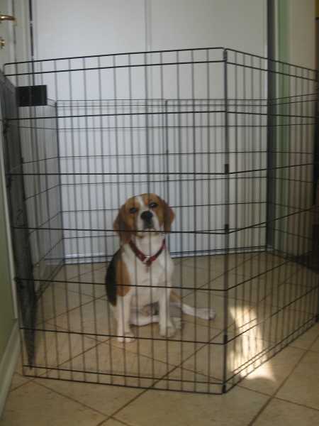 Если в доме уже есть щенок или взрослая собачка и появилась необходимость установить вольер, то приучить животное к нему будет достаточно сложно. Для начала стоит установить манеж в комнате с открытой дверцей, чтобы собака поняла, что он не причинит ей вреда.