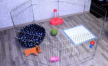 Совет! О наличии вольера лучше позаботиться до появления в квартире питомца. Проще приучить с чистого листа маленького щенка, нежели долго объяснять предназначение манежа подросшей собаке с устоявшимися рефлексами.