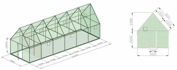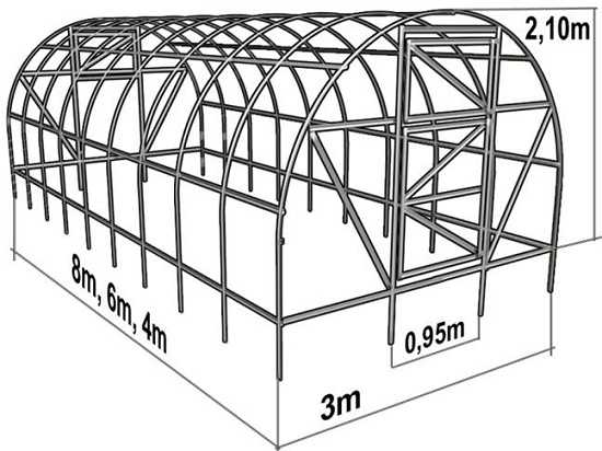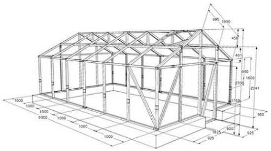 Чертеж самодельного каркаса теплицы из профильной трубы