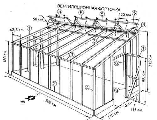 В теплице обязательно должно быть как минимум 2 форточки напротив друг друга и дверь.