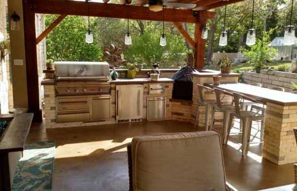 7. Создайте настроение. Такие удобства, как освещение, аудиоколонки, гриль,- сделают этот уголок любимым местом отдыха. Запланируйте необходимые коммуникации на этапе проектирования, вместо того, чтобы проводить электрику по уже готовой постройке и пытаться безуспешно спрятать все технические коммуникации.