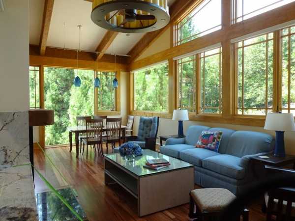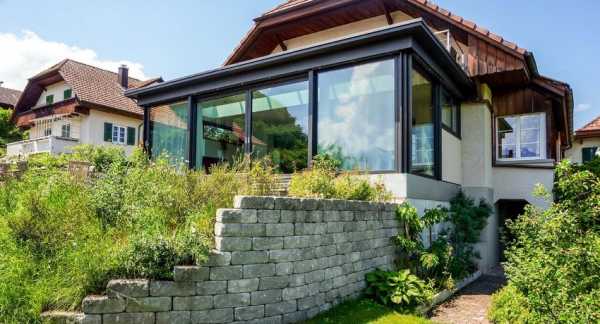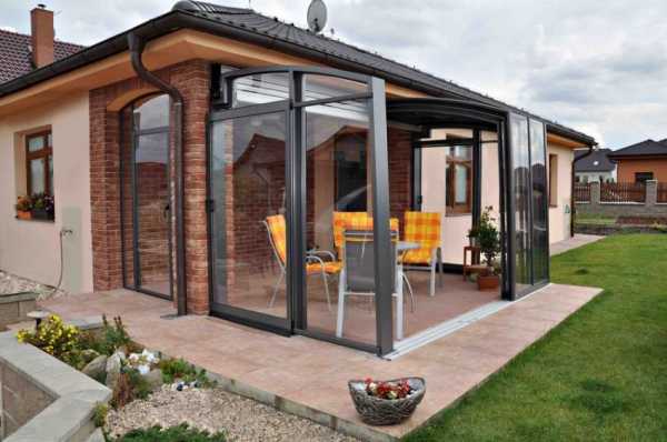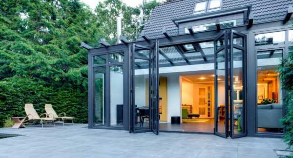 Веранда с раздвижными окнами позволяет превратить пристройку в летнюю террасу