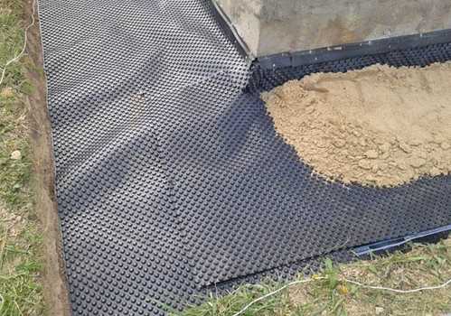Подготовка грунта очень важна для эффективного функционирования отмостки, как защитного элемента. Грунт должен быть хорошо утрамбован, а растительный слой удалён. Трава и сорняки не только будут мешать трамбовке, но и впитывать воду, что нежелательно. Когда грунт утрамбован, можно укладывать слой для дренажа. Это может быть как щебень, так и другой материал, но при этом важна не только ширина отмостки, но и глубина дренажного слоя, поскольку разный материал (брусчатка, плита, плитка) могут иметь разную толщину.
