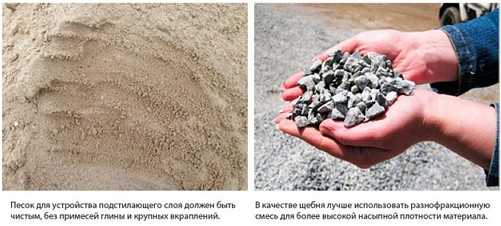 Поверх песка насыпается слой щебня. Толщина его должна составить 5 см.