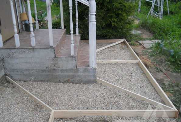 После того как опалубка будет собрана, можно приступать собственно к обустройству самой отмостки. Выполняется эта процедура следующим образом: