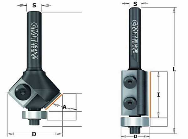 | Кромочные конусные, в зависимости от угла наклона кромки фрезы, используются для подготовки заготовок перед соединением, получения декоративной фаски или для обработки деталей мебели, которые затем будут соединены в изделия круглой (многоугольной) формы. | ||