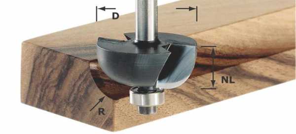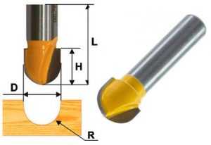 - Галтельные фрезы, предназначенные для выфрезеровывания полукруглой канавки в торце деревянного бруска. Такие фрезы также являются достаточно универсальными, поскольку от глубины погружения фрезы в материал зависит размер дуги канавки. Галтельные фрезы с опорным подшипником позволяют получать декоративные мебельные рейки.
