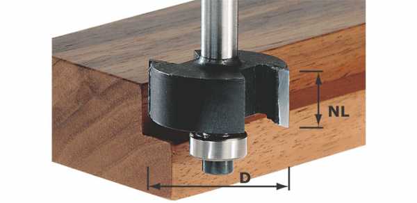 Данная оснастка чаще всего изготавливаются с подшипником, который позволяет обрабатывать кромки и торцы древесины не только посредством настройки опорного стола, но и по шаблону. Глубина внедрения такой фрезы в заготовку может быть ограничена установкой упорного подшипника.