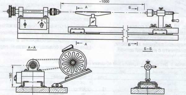 Хорошая работа самодельного станка зависит от точности частей, аккуратности пригонки их друг к другу, прочности соединений. Понятно, станок во время работы не должен шататься, шпиндель бить в подшипниках. Маховик должен вращаться равномерно и строго в одной плоскости. Наконец, закрепление задней бабки и подручника в любом положении должно быть жестким, надежным.