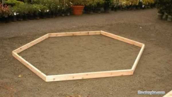 ΠΡΠ»ΠΈ Π²Ρ Ρ ΠΎΡΠΈΡΠ΅ ΠΏΠΎΡΡΡΠΎΠΈΡΡ Π½Π΅ΠΎΠ±ΡΡΠ½ΡΡ Π±Π΅ΡΠ΅Π΄ΠΊΡ, ΡΠ΄Π΅Π»Π°ΠΉΡΠ΅ Π΅Π΅ ΠΏΡΡΠΈΡΠ³ΠΎΠ»ΡΠ½ΠΎΠΉ. ΠΡΠΎ ΠΌΠΎΠΆΠ΅Ρ Π±ΡΡΡ Π½Π΅ ΡΠΎΠ»ΡΠΊΠΎ ΡΠ°Π²Π½ΠΎΡΡΠΎΡΠΎΠ½Π½ΠΈΠΉ, Π½ΠΎ ΠΈ Π²ΡΡΡΠ½ΡΡΡΠΉ ΠΏΡΡΠΈΡΠ³ΠΎΠ»ΡΠ½ΠΈΠΊ, Π½Π°ΠΏΡΠΈΠΌΠ΅Ρ, ΠΌΠΎΠΆΠ½ΠΎ Π²ΡΠ±ΡΠ°ΡΡ ΡΠ°Π·ΠΌΠ΅ΡΡ 5*3 ΠΌ. ΠΡΠ»ΠΈ Π±Π΅ΡΠ΅Π΄ΠΊΠ° ΠΈΠΌΠ΅Π΅Ρ ΡΠ°Π·ΠΌΠ΅ΡΡ 5*5, ΡΠΎ ΡΡΠΎΡΠΎΠ½Π° ΠΏΡΡΠΈΡΠ³ΠΎΠ»ΡΠ½ΠΈΠΊΠ° Π΄ΠΎΠ»ΠΆΠ½Π° Π±ΡΡΡ Π΄Π»ΠΈΠ½ΠΎΠΉ 146 ΡΠΌ, ΠΊΠ°ΠΊ ΠΏΠΎΠΊΠ°Π·Π°Π½ΠΎ Π½Π° ΡΠ΅ΡΡΠ΅ΠΆΠ΅. Π ΡΠ΅Π½ΡΡΠ΅ ΠΌΠΎΠΆΠ½ΠΎ ΠΏΠΎΡΡΠ°Π²ΠΈΡΡ ΠΊΡΡΠ³Π»ΡΠΉ ΡΡΠΎΠ» Π΄ΠΈΠ°ΠΌΠ΅ΡΡΠΎΠΌ 110 ΡΠΌ. ΠΡΠΈ ΡΡΠΎΠΌ Π΄Π»Ρ ΡΠ΄ΠΎΠ±ΡΡΠ²Π° ΡΡΡΠΎΠ΅Π½ΠΈΠ΅ Π΄Π΅Π»Π°ΡΡ ΡΠ°ΡΡΠΈΡΡΡΡΠΈΠΌΡΡ ΠΊΠ²Π΅ΡΡ Ρ.
