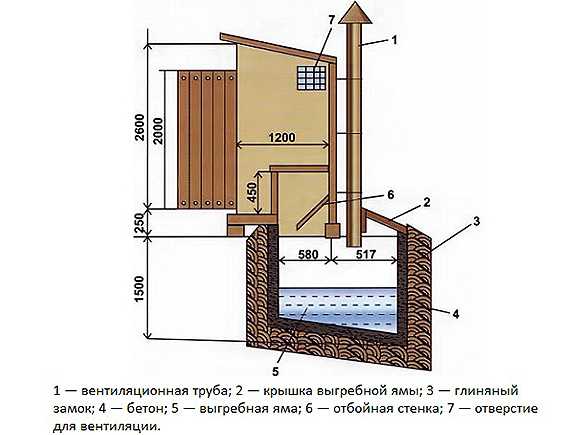 Туалет для дачи начинают возводить с устройства выгребной ямы. Стандартная яма имеет глубину 1 — 1,5 м и ширину 1 м. Если грунтовые воды находятся достаточно далеко, то глубина ямы для туалета может быть больше.