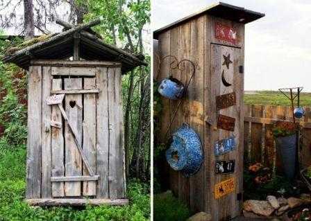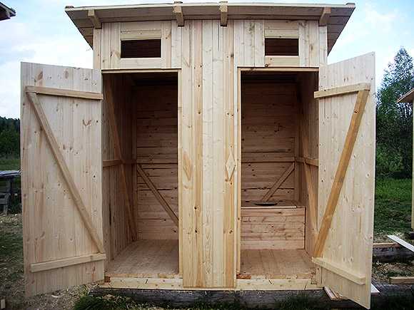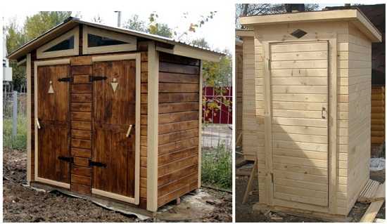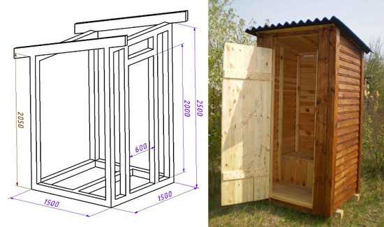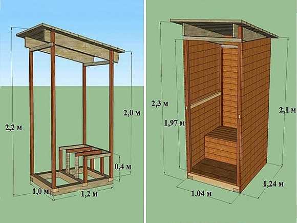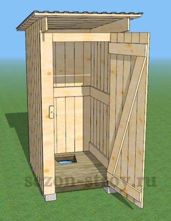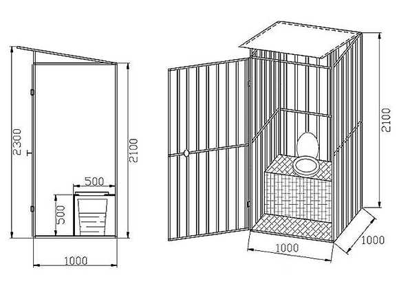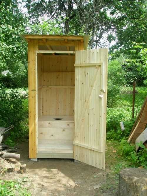 Туалетная кабинка может иметь и другую конструкцию, но принцип постройки у всех идентичен. Вот несколько примеров.