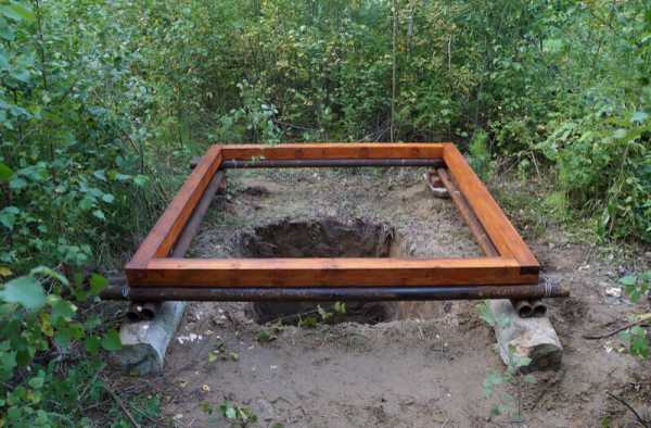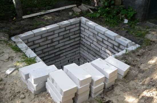 Сначала необходимо выкопать котлован 1×1 м с глубиной 2−3 метра и выложить его стены кирпичом, досками или бетонными кольцами. Все стены необходимо законопатить и заштукатурить. Дно может быть со слоем щебня (или гравия), кирпичной кладкой или бетонной стяжкой.