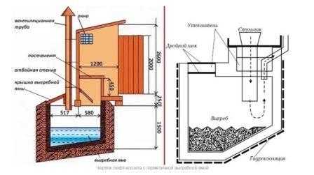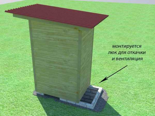 В этом случае процесс устройства тоже начинается с рытья ямы. Ее дно должно иметь уклон в сторону расположения люка. Стены заливаются бетоном, предварительно соорудив слой гидроизоляции. Над ямой нужно оборудовать люк с двумя крышками — металлической и деревянной. Между крышками монтируется теплоизоляционный слой. В такой уборной вместо подиума можно установить унитаз.
