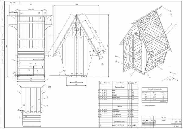 Проще всего изготовить кабинку из дерева, т.к. при работе с деревом не требуется специального инструмента, например, сварки. Деревянная кабинка не будет нагреваться на солнце в отличие от туалета из профлиста, и пользоваться им будет комфортно.