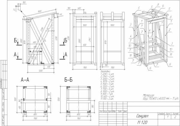 Рис.30. Каркас стен туалетной кабинки из деревянного бруска.
