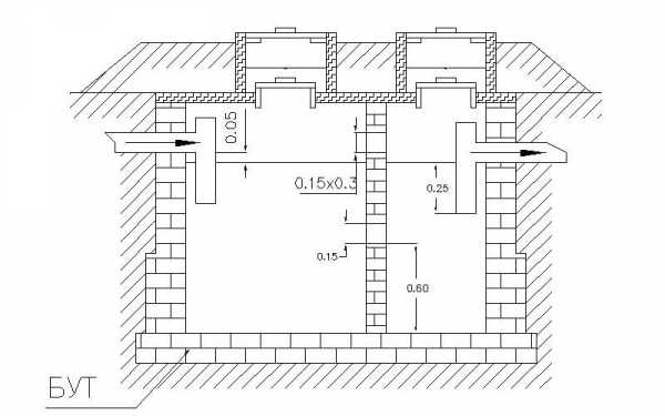 Рис.56. Септик своими руками может быть изготовлен из камня, бетона или кирпича. Более простой вариант устройства септика — это использование готовых бетонных конструкций, например, бетонных колец. Изготавливая септик своими руками важно хорошо его герметизировать, чтобы не было утечки нечистот и подтопления грунтовой водой.