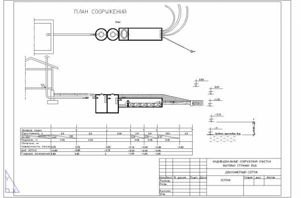 Септик представляет собой герметичную камеру или несколько камер в которые попадают отходы жизнедеятельности, где они накапливаются и частично перерабатываются. Основным критерием строительства септика является его объем. Для семьи из трех человек минимальный объем септика должен быть 1,5 м.куб.