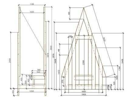 Рис.29. При постройке уличного туалета сначала изготавливают каркас из брусьев, после чего домик обшивают с наружи. Все необходимые размеры для строительства указаны на чертеже. Дверь может быть изготовлена из досок.