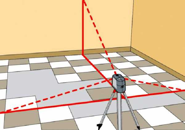 - В углу помещения отмечают угол в 45˚ и делают ориентир. Это леска либо маркерная отметка.