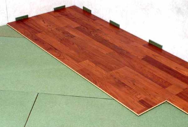 Монтаж ламината на деревянный пол проводится перпендикулярно расположению нижнего слоя.