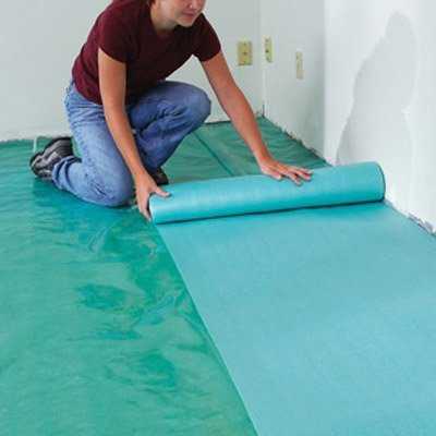 Перед тем, как стелить ламинат, на бетонный черновой пол укладывают прокладочный материал. Он выполняет несколько функций: