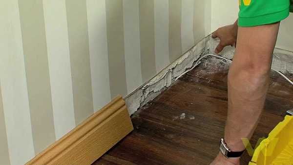 После укладки пола монтируют плинтуса и пороги. Для этого используют специальные крепления. Фиксацию плинтусов к полу не проводят. Деревянные плинтуса подходят к безупречно ровным стенам. Для поверхностей с небольшими дефектами используют пластиковые плинтуса. Пороги выбирают одно- либо двухуровневые.
