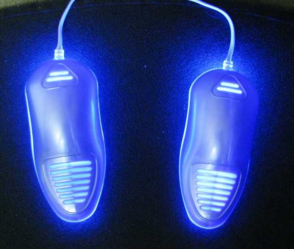 Догадываетесь, как работает ультрафиолетовый обогреватель для обуви. Как обычный инфракрасный источник тепла, дополненный специальной лампой, обеспечивающей дезинфекцию. Нет влаги, нет запаха. Получается синяя лампа для уха, но гораздо мощнее.