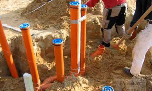 В дренаже прокладываются инженерные системы – канализация, водопровод, электрические системы в надежной изоляции. Высота отводов должна учитывать толщину фундамента, для зданий с высоким цоколем потребуется больше материалов.
