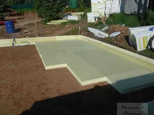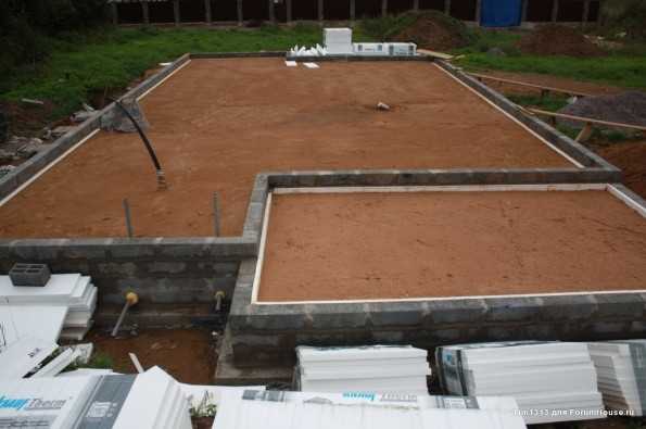 Для защиты фундамента от промерзания и воздействия почвы, связанного с отрицательными температурами, поверх подушки необходимо укладывать теплоизоляцию. В качестве утеплителя используется экструдированный пенополистирол