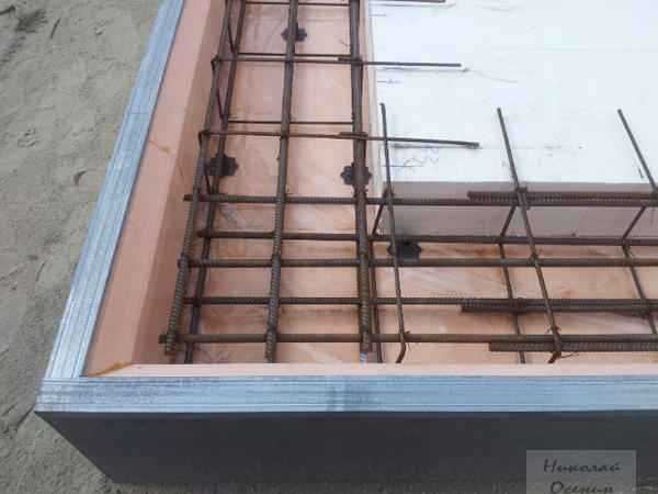 Далее собираем арматурный каркас и укладываем утеплитель.