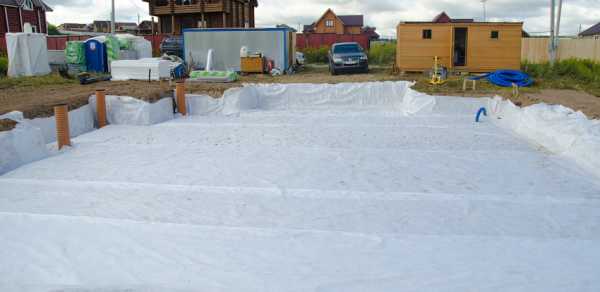 Заложили все геотекстилем и приготовились к засыпке песком.