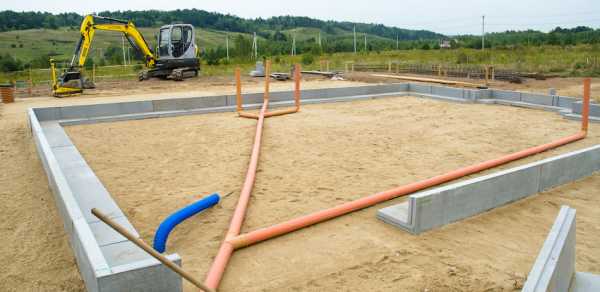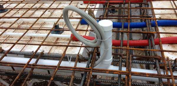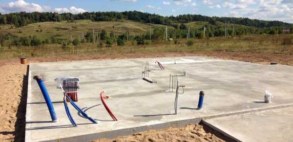 - Все виды инженерных коммуникаций прокладываются внутри монолита – силовые и связевые кабели, водопровод, канализация, система теплого пола тоже устраивается на начальном этапе перед заливкой фундамента.