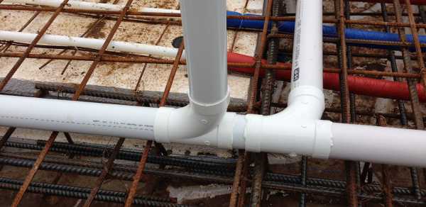 Из дополнительных коммуникаций в фундамент решили заложить трассу встроенного пылесоса. Спроектировали, закупили необходимые трубы и сделали разводку. Кто-то использует для трассы пылесоса канализационные трубы. Мы же решили сделать по правилам. Обычные трубы канализации соединяются на резинках, а предназначенные для трассы встроенного пылесоса сажаются на специальный клей.