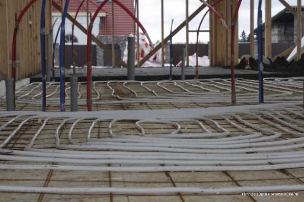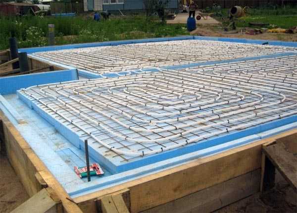 УШП перед заливкой бетоном, с разведенными трубами теплого пола