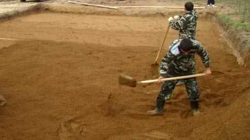 Каждый слой песка тщательно проливался и утрамбовывался.