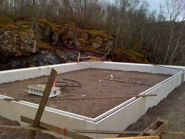 Реализаций строительства УФФ у тех же скандинавов может быть много — в качестве «ленты», могут использоваться как блоки, так и монолитный бетон, причем в несъемной опалубке из пенопласта. При больших уклонах и в некоторых других случаях, могут отказаться от обратной засыпки и сделать перекрытие ЖБ плитами, с дальнейшем обустройством утепленной стяжки по ним. Могут использоваться разные схемы утепления ленты и периметра. В Норвегии, из за особенностей скальных грунтов, часто делают ленту без пятки, на щебеночной подушке.