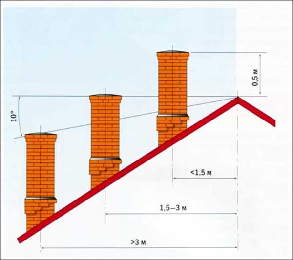 Размеры расположения дымоходов на крыше со склоном: