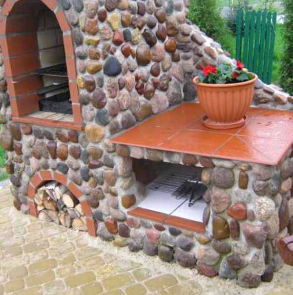 Стационарные печи барбекю чаще всего выполняются из бетонных блоков, кирпича или природного камня.