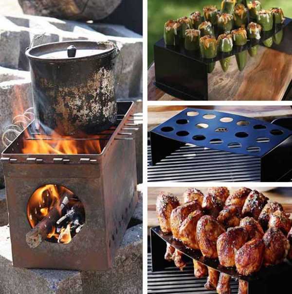 Небольшой и легкий разборный вариант, который можно изготовить в домашних условиях и возить в машине. Подходит для походов в лес, красивый, удобный и простой.