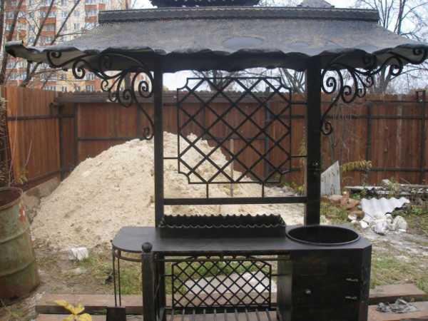 Для разнообразия можно выполнить арочное, купольное перекрытие, тогда стоимость навеса увеличится. Применение сварки делает такой мангал полностью стационарным вариантом, если не делается разборная крыша.