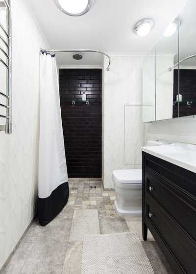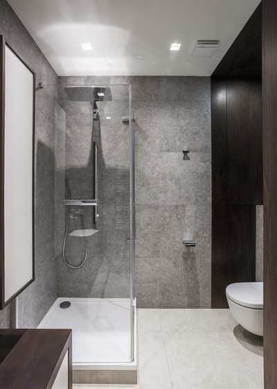 Впрочем, для защиты от протечек организация трапа и пола под уклоном во всей ванной — мера сомнительная. «Трап в ванной комнате удастся сделать только за счет поднятия уровня пола, то есть на входе мы получим не просто ступень, а подъем на другой уровень пола, что выглядит бессмысленным. Утапливать трап в перекрытия запрещено!», — напоминает архитектор Анна Жемерева.