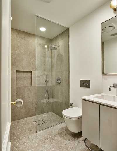 Этот вариант часто выглядит оптимальным. Во-первых, красиво. «Готовая душевая кабина из магазина всегда смотрится более дешево, не попадает четко в нужные габариты, визуально занимает много пространства, — говорит дизайнер Елена Маркина. — Со временем створки расшатываются, начинают протекать. В отличие от нее индивидуальная душевая с трапом чаще всего отделывается такой же плиткой, как и весь санузел, отделяется прозрачными стеклянными перегородками и занимает ровно ту площадь, которую под нее отвели, не загромождая помещение визуально».